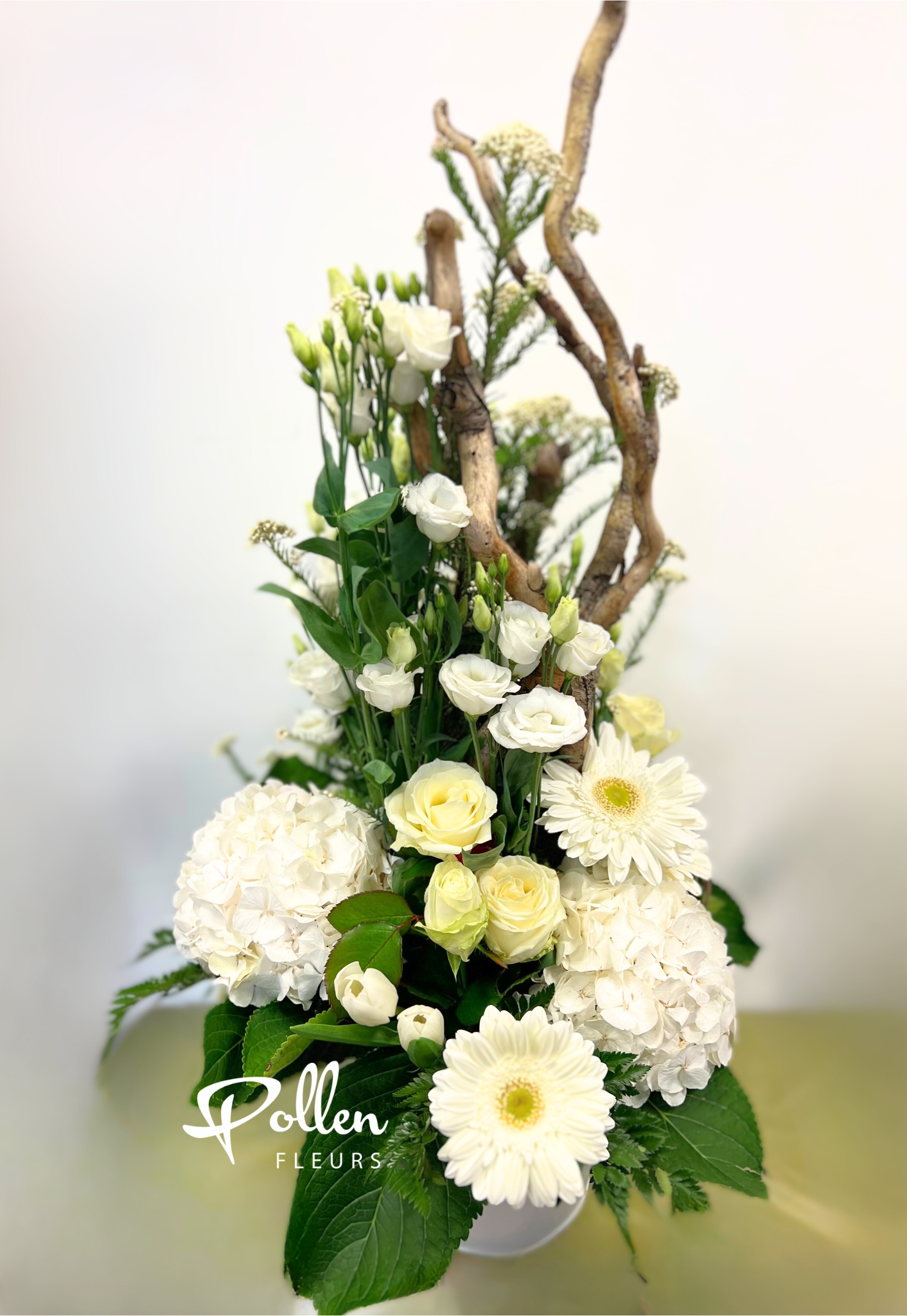 Coussin conique végétatif fleurs de saison blanches et vertes