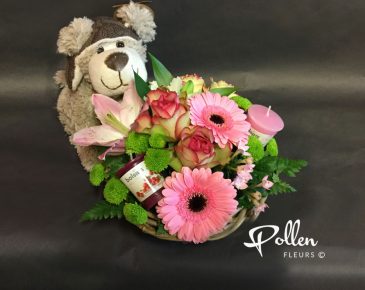 Nouveau ! Cadeau original. Vos compositions ou bouquets peuvent être accompagnés d’une peluche ou bougies pour le plus grand plaisir de vos proches.