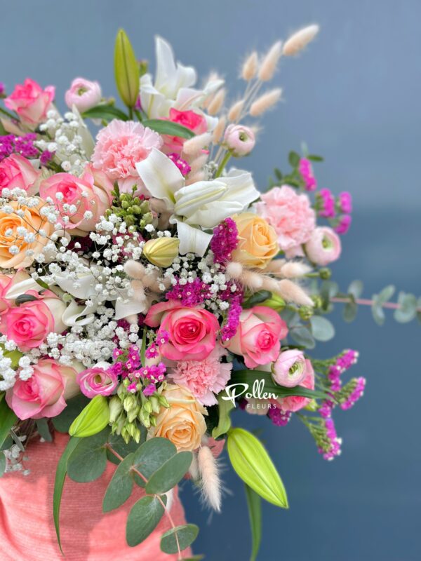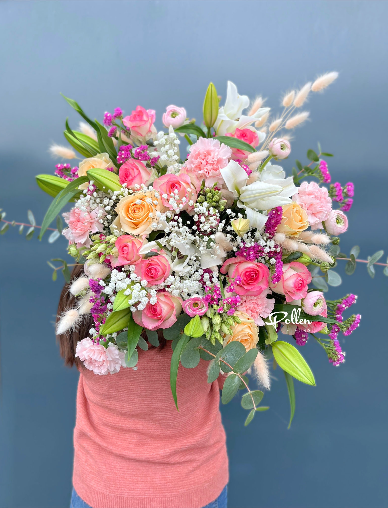 Ce grand bouquet aux teintes pastel apportera une touche de douceur, parfait pour exprimer une attention délicate. Son volume généreux et ses couleurs tendres ne manqueront pas de marquer les esprits.