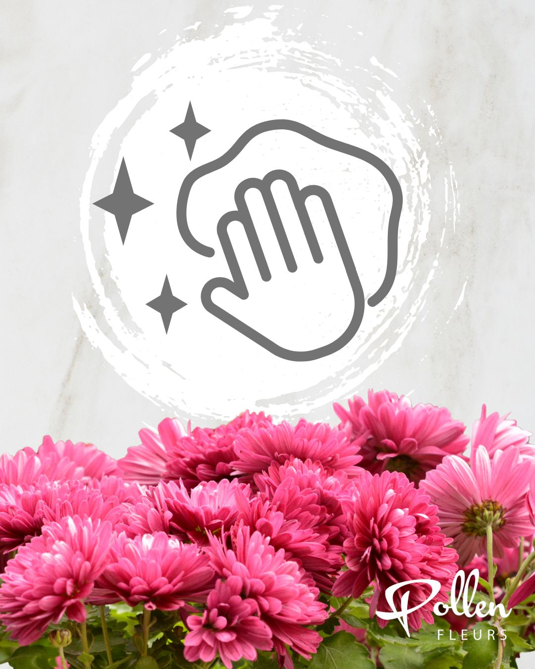 Nous effectuons le nettoyage de la tombe et déposons un chrysanthème de production locale (coloris en fonction de l’arrivage)