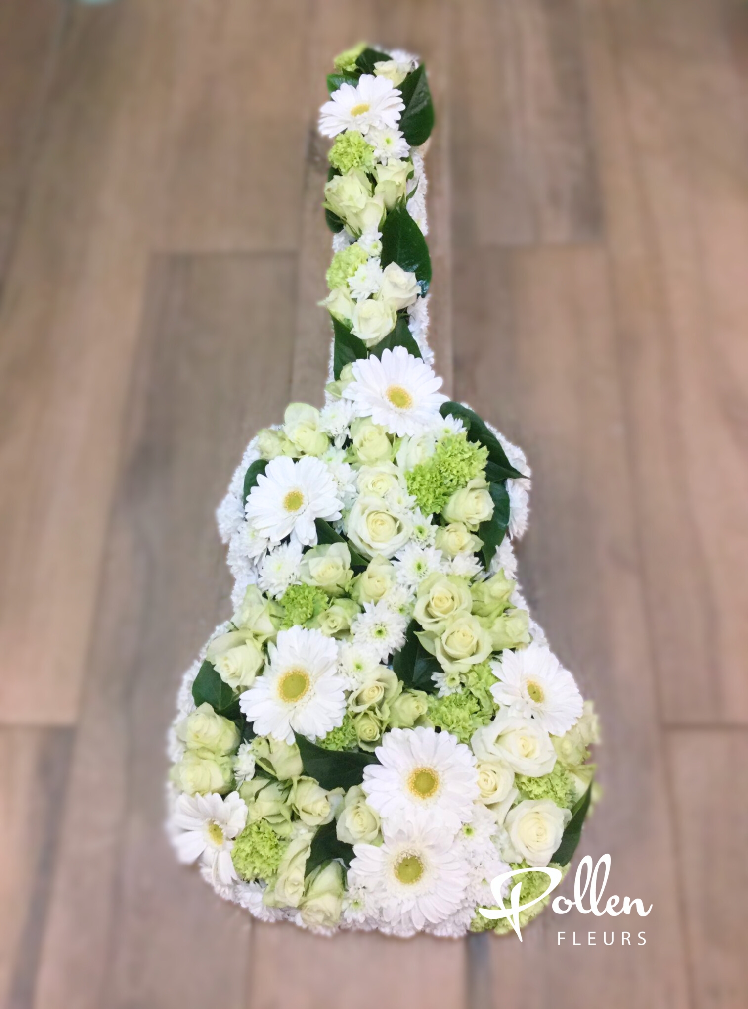 Dernier hommage à un musicien avec cette composition florale sur-mesure en forme de guitare.