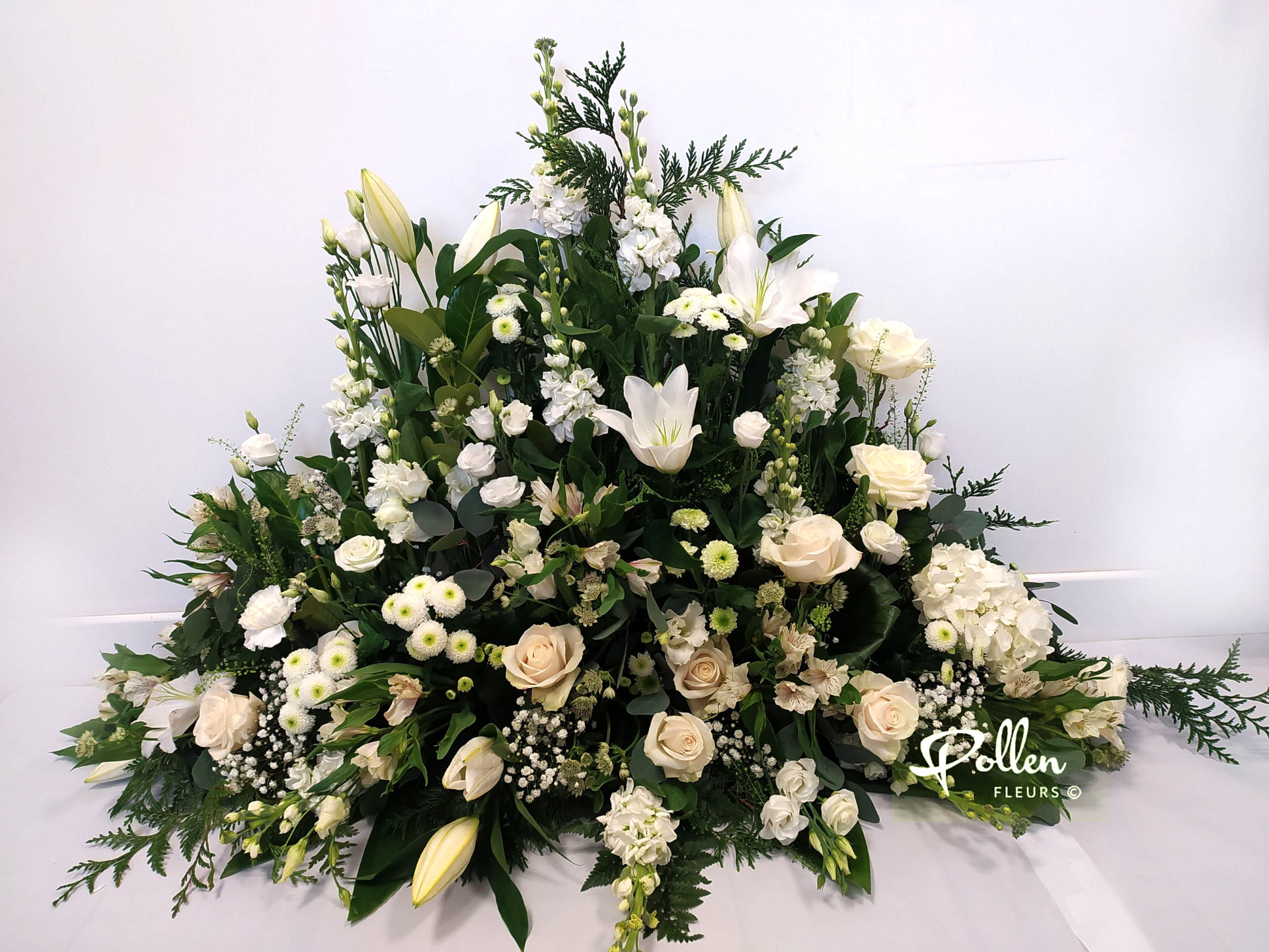 Le devant de tombe classique est une composition uniface à déposer devant le cercueil. Il apportera du volume et de la hauteur pour un dernier hommage.